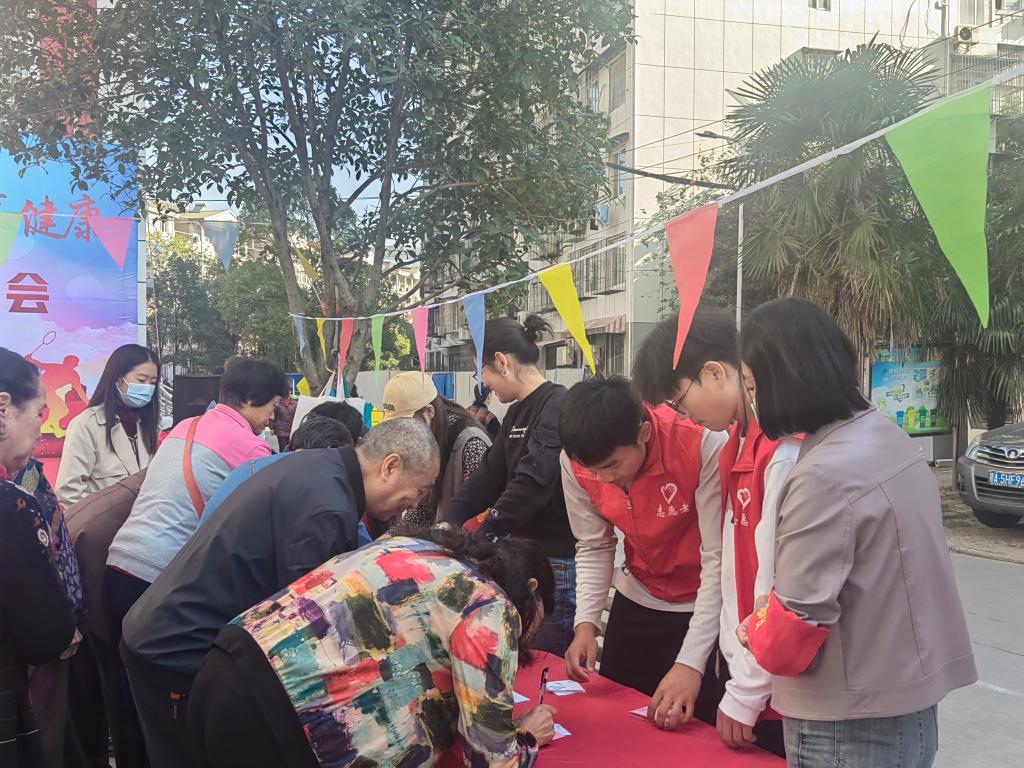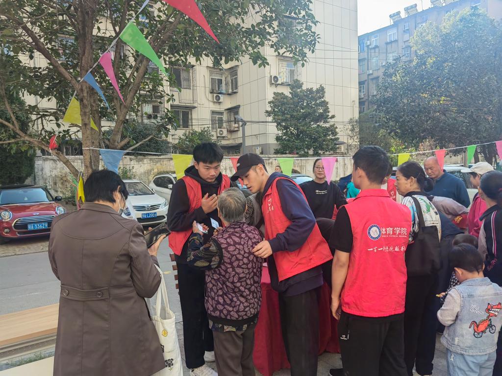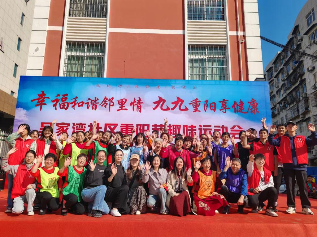 10月21日437必赢会员中心体育学院“一言一行”志愿服务队赴吴家湾社区参加“幸福和谐邻里情 九九重阳享健康”重阳节趣味运动会志愿服务活动。