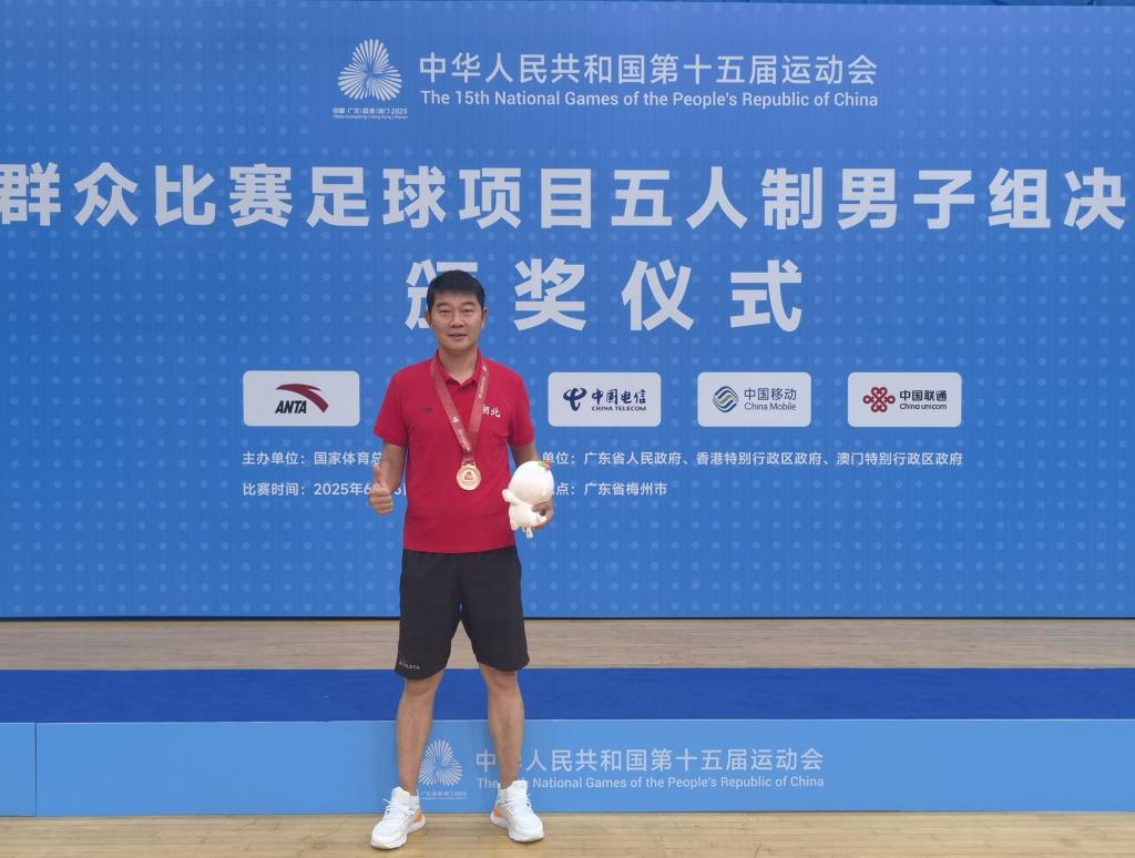 在刚刚落幕的中华人民共和国第十五届运动会群众比赛足球项目(五人制男子老将组)中,我校437必赢会员中心梁爽老师作为原中国五人制足球男子国家队队长,带领湖北队奋勇拼搏,最终斩获季军,为湖北体育代表团再添一枚铜牌,充分展现了我校教师的专业实力与竞技风采。