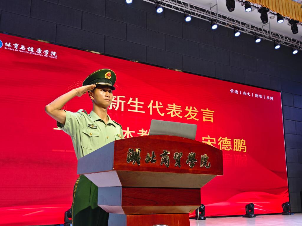 见面会在庄严肃穆的奏唱国歌仪式后正式拉开帷幕。学院党总支书记刘冰清首先代表学院发表欢迎致辞,对新生的到来致以诚挚祝贺,并勉励新生以“崇德 尚文 勤思 乐博”的院训为指引,在大学阶段明确自身定位、树立远大理想,成长为兼具高尚品德与专业本领的体育健康领域专业人才。随后,新生代表、2025级体育教育本科1班宋德鹏同学发言。这位曾服役于中国武装警察部队的退役军人分享了“从军营到校园”的使命传承,号召全体新生“退役不退志、退伍不褪色”,将军人作风融入课堂与训练场。“大学最具魅力之处在于蕴含无限可能。”老生代表、24级健康大数据管理与服务专科3班褚蕊宁以“主动”与“探索”两个关键词,讲述了自己从“金话筒”舞台到志愿服务赛场的收获历程,并承诺全体学长学姐将成为新生最为暖心的“校园向导”。