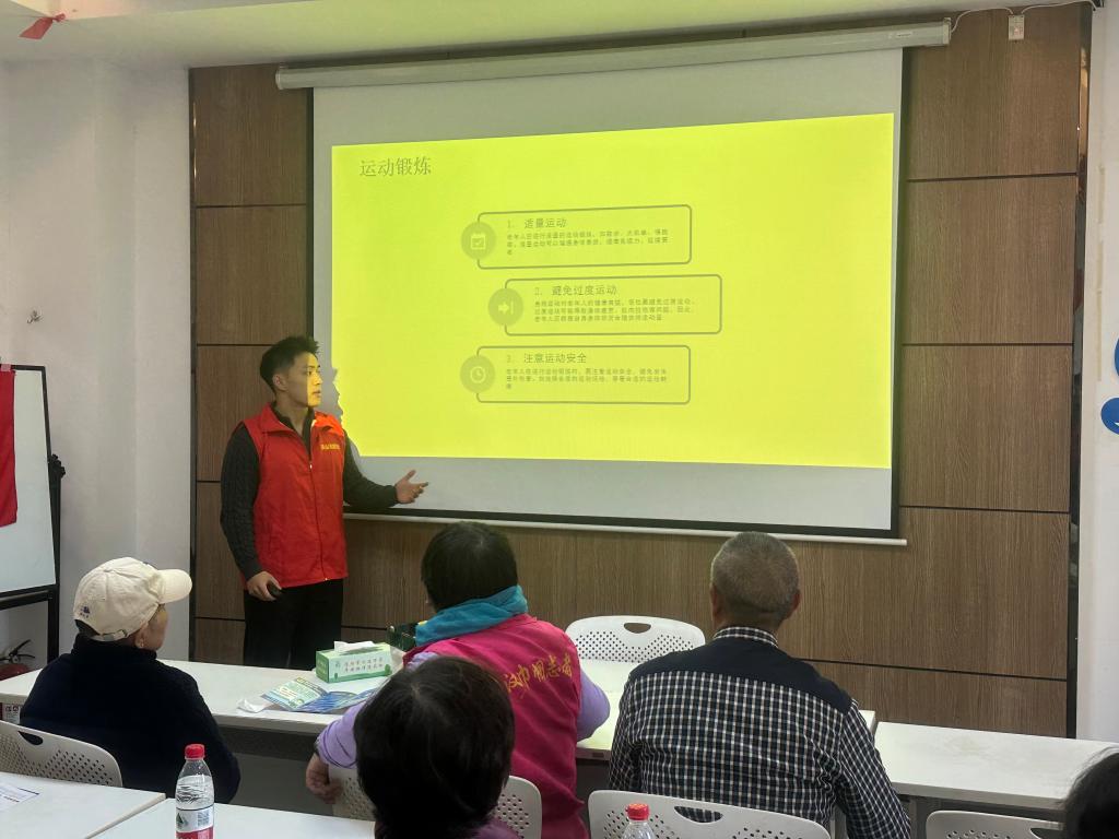 志愿者高新尚立足学院专业特色,运用所学专业知识,从饮食调节、运动锻炼、心理调适、定期体检、合理用药与健康管理等多个方面向社区老人们普及老年健康知识,通过与社区老人们深入的交流互动,志愿者们热心、细致地给老年人提出了针对性的健康指导,并提醒老年人要注意休息,养成良好的生活方式,遵医嘱用药,保持适当运动等。