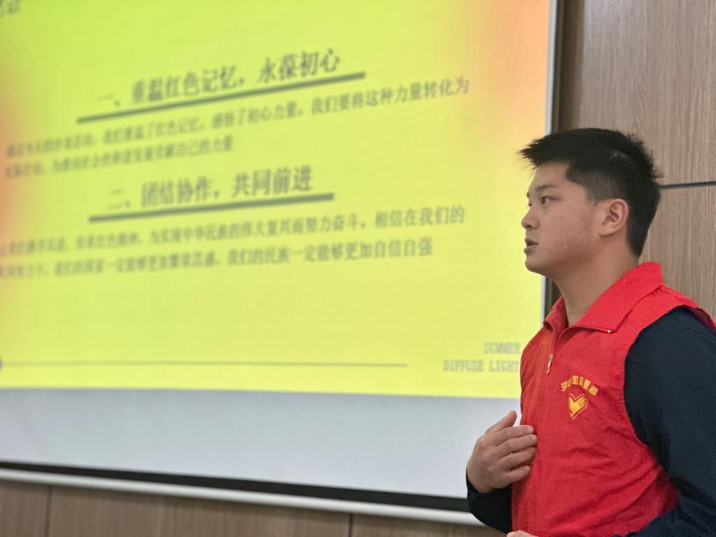 退伍大学生杨驰、张治棋、石犇、周永彬以自身军旅生活为开端,以传承“大别山精神、抗洪精神、抗疫精神”为脉络,从红色记忆的珍贵与价值、重温红色历程、感悟初心力量、红色记忆与现代社会的融合、传承红色精神五个方面开展红色宣讲主题活动。宣讲结束后,队员们围绕中国共产党人精神谱系,与老人们进行了深入的探讨和交流。参与活动的老党员张爷爷感慨到:“这些精神是我们宝贵的财富”!