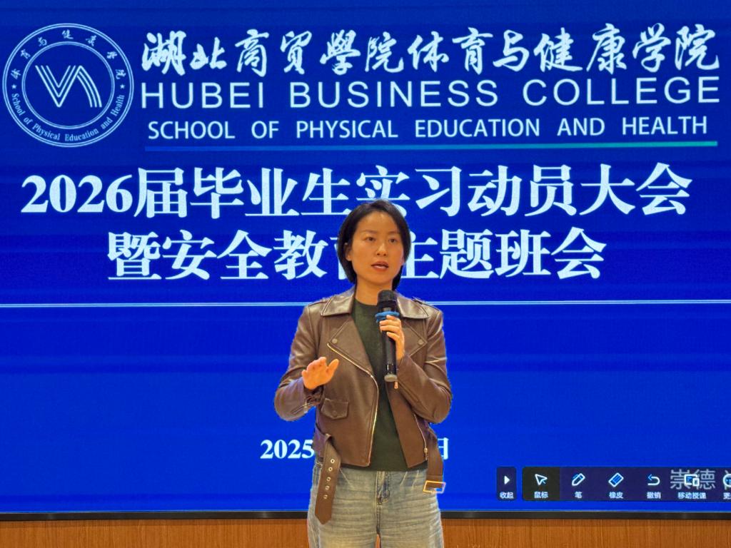 在安全教育环节,学院党总支书记刘冰清围绕实习期间的安全稳定工作开展了主题教育。结合以往实习中可能出现的安全隐患与真实案例,她从交通安全、人身财产安全、防火防盗、防范电信网络诈骗等多个维度进行了细致讲解与警示,要求同学们牢固树立“安全第一”意识,增强自我保护能力,严格遵守法律法规、实习单位规章制度及学校管理要求。她特别提醒同学们保持与学院、辅导员及家长的密切沟通,确保信息畅通,共同筑牢安全防线,保障实习全程顺利平安。