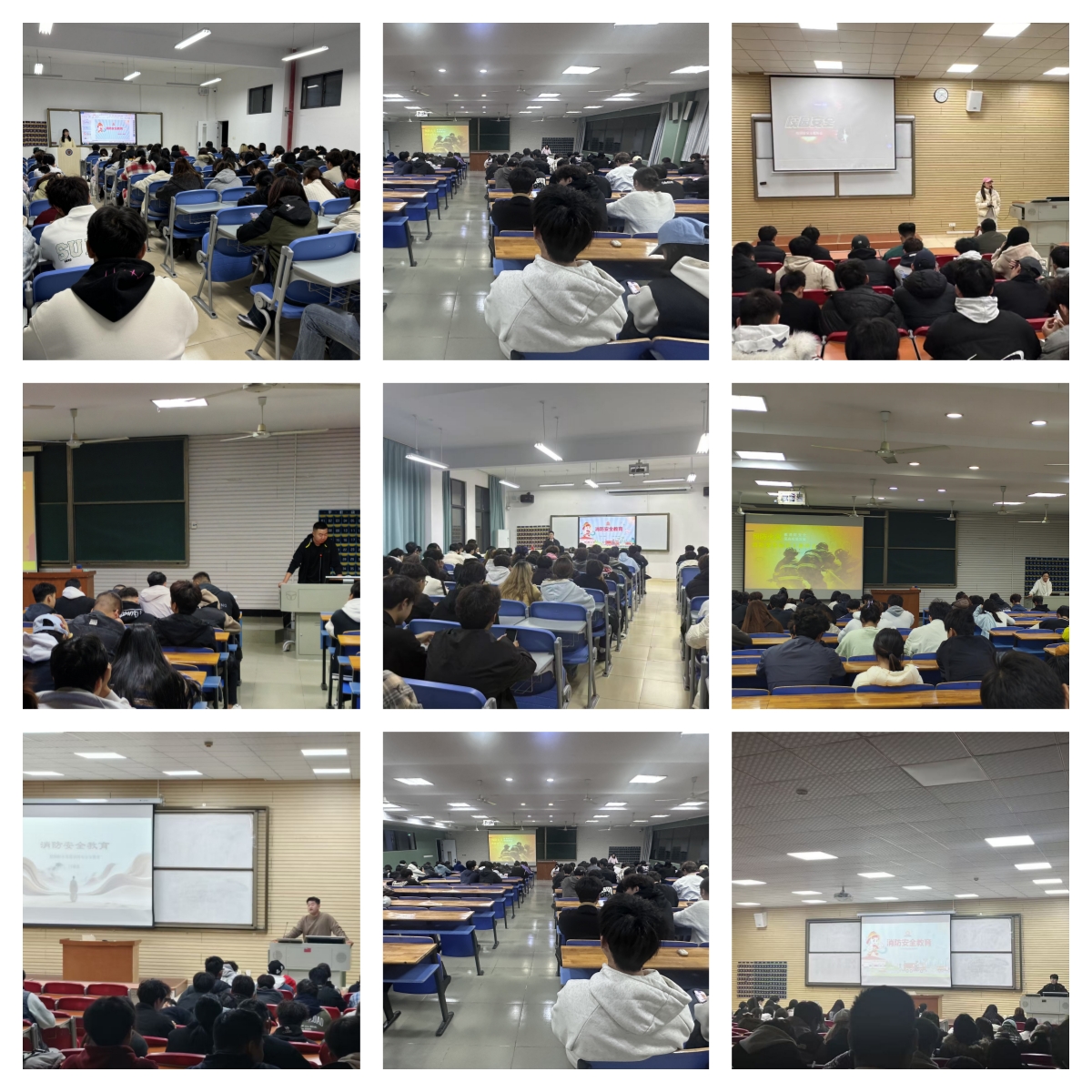 在消防安全主题班会上,采用“宣讲+视频”形式融入日常学习场景。辅导员们担任“消防宣讲员”,通过PPT系统讲解火灾成因、初期扑救方法、校园常见消防隐患排查等内容,并结合宿舍、教室等高频场景案例,以贴近学生生活的视角解读知识,强调消防安全重要性。