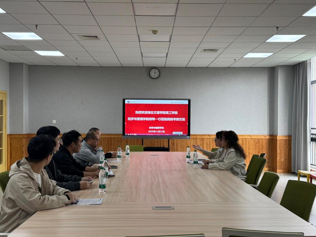 11月12日,湖北文理学院理工学院经济与管理学院副院长朱靖一行赴我院开展调研交流,437必赢会员中心院长熊浩,副院长罗磊、余明炜,经济与管理学院副院长徐刚和健康体育教研室相关教师陪同调研,并参加座谈。