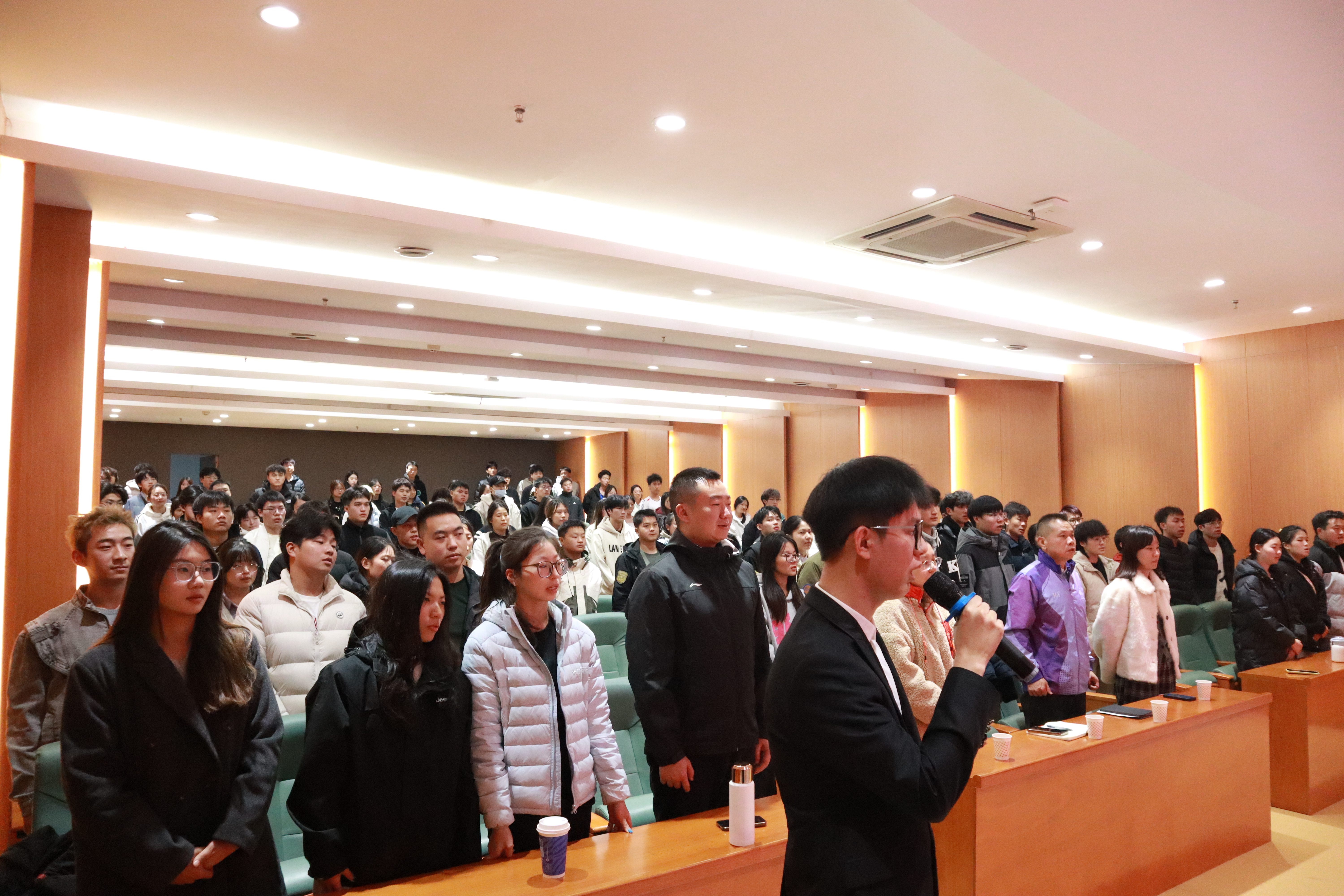 在大会庄严而热烈的氛围中,学院学生会轮值主席张俊杰引领全体与会成员进行了以“我们的青春不‘触礁’”为主题的集体誓词朗读。通过这种极具仪式感的集体行为,进一步强化了学生的自我主体责任感,将“要我做”的被动约束,升华为“我要做”的主动选择,共同许下了一份关于青春、关于成长、关于未来的无负韶华的安全契约。