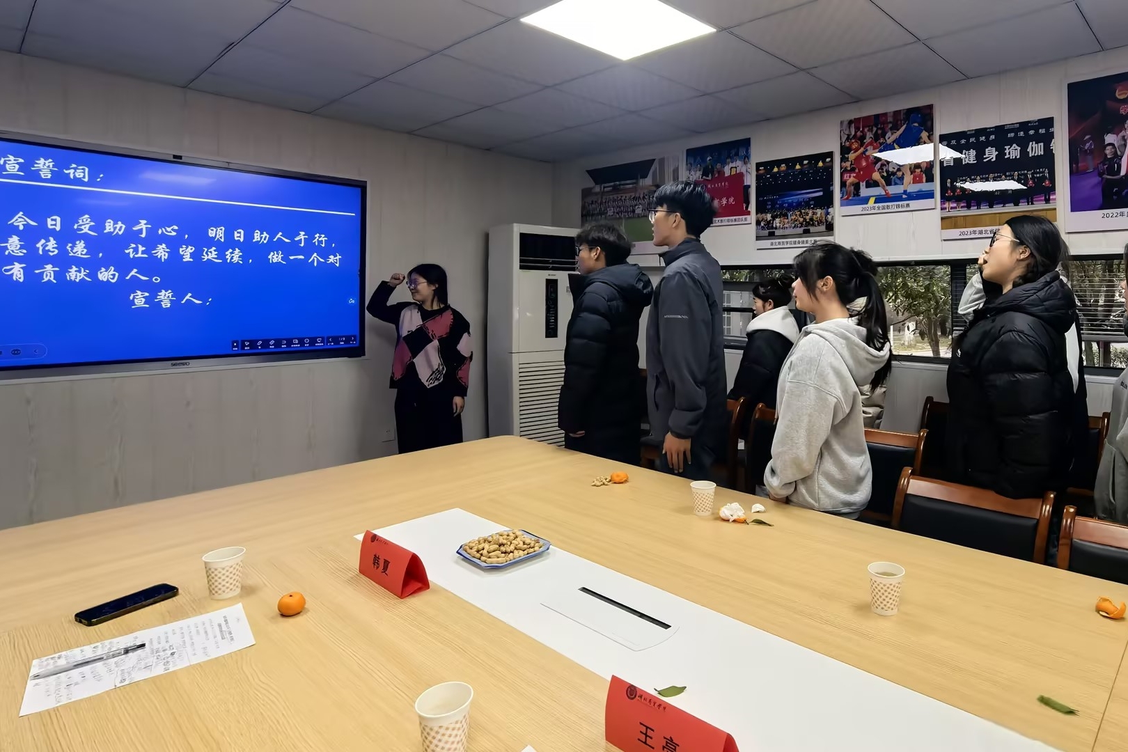 座谈会最后,国家奖学金获得者程思雨带领全体受资助同学,庄严进行了以“感恩”与“传递”为主题的集体宣誓。同学们声音铿锵,誓言真挚,在庄严的仪式中凝聚起回报关怀、接力奉献的共同信念。